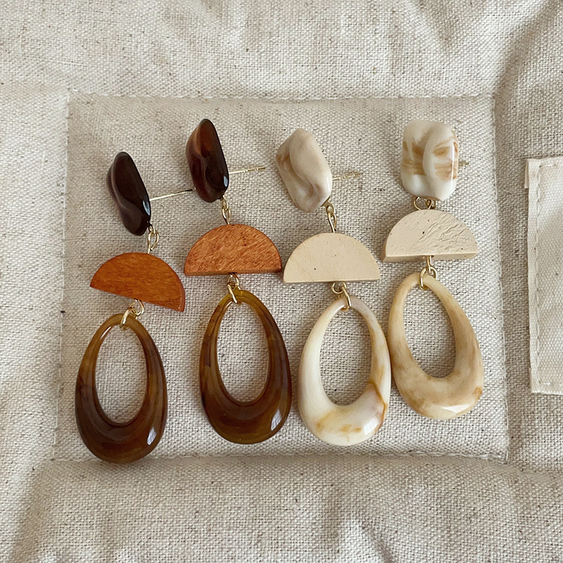 Geometric Hollow Oval Resin Earrings for Women Hong Kong Style Retro Light Luxury Trendy Personality Exquisite Fashion Earrings Earrings