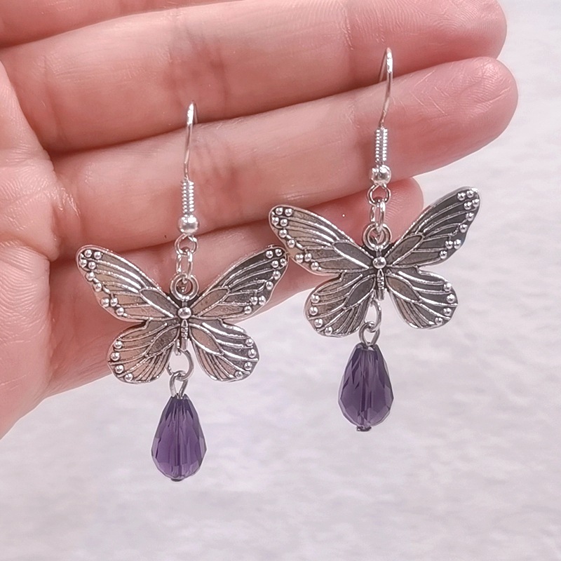 Fashion Butterfly Pendant Earrings Glass Teardrops Pretty Women Butterfly Earrings Vintage Jewelry Butterfly Crystal Ears