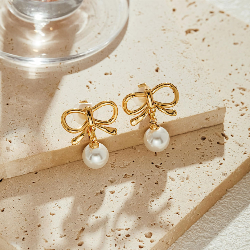 European and American Cross-Border Fashion Bow Pearl Pendant Heart Ear Clip Women's Super Fairy Elegant Ins Style Earrings Jewelry