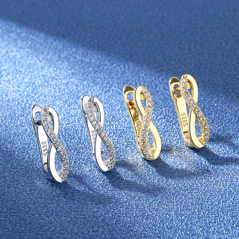 Korean-style Fashion 8-character Small Ear Buckle Women's Rearrings Diamond Earrings Japanese and Korean-style Simple Elegant Diamond Ear Buckle Women's Ear Accessories