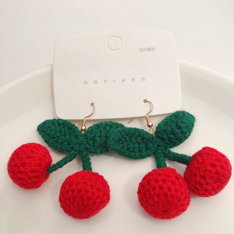 Handmade Cherry Ear Hook Ear Clip Ear Needle Adult Earrings Without Ear Holes Ear Clip Cute Sweet Ear Hook Wholesale