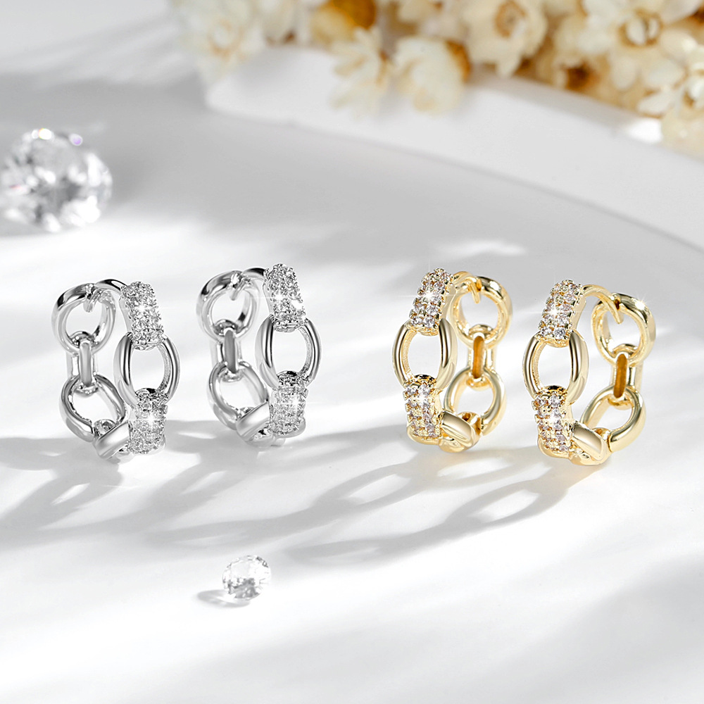 Cross-border European and American Fashion Ring Buckle Earrings Women's High-grade Copper Plated 14K Gold Zircon Ear Buckle Ear Jewelry