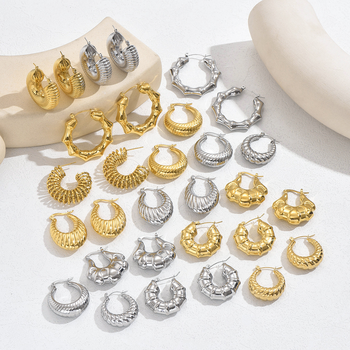 Retro Style Titanium Steel Hollow Earrings Women's Temperament Titanium Steel Crescent Plated 18K Hollow Glazed Earrings