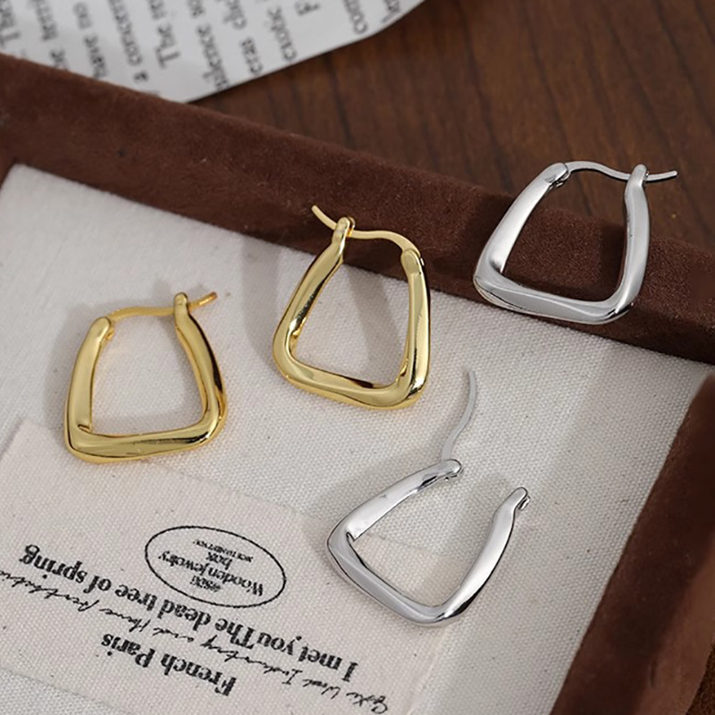 New Simple Piece Ring Ear Buckle Women's Fashionable Distinctive Trendy Geometric Square Earrings Metallic Commuter Earrings