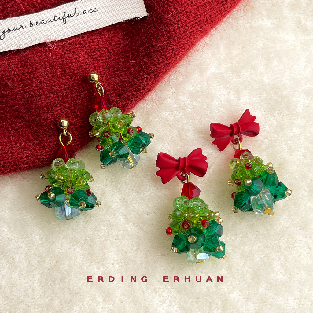 Christmas Tree Earrings ~ Fresh and Sweet Hand-made Design Sense New Bow Christmas Earrings Factory Yiwu Jewelry