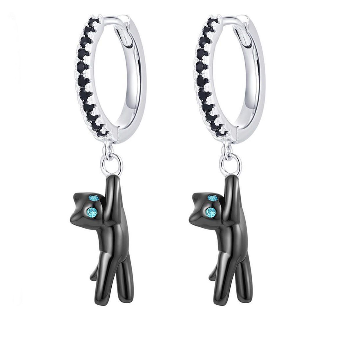 Superman Cat Black Cat White cat diamond earrings female ear buckle couple ins style small cute all-match earrings fashion