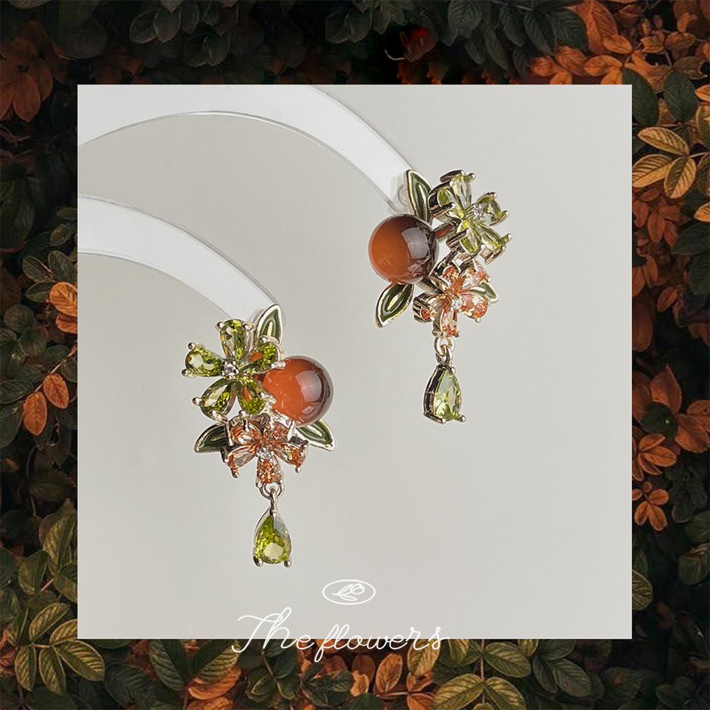 Mori sweet flower persimmon 925 silver needle inlaid zircon literary retro earrings factory earrings jewelry supply