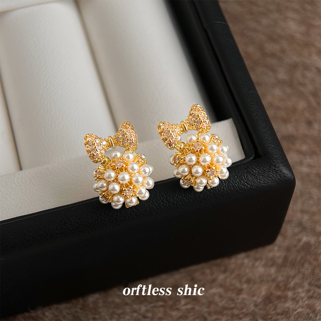 Fashionable and High-End Small Fragrance S925 Silver Needle Micro-Paved Zircon Bow Geometric Fresh and Sweet Earrings for Women