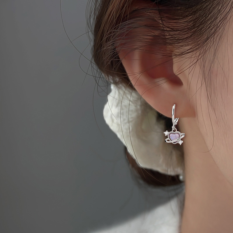 Love Planet Zircon Heart-shaped Earrings Women's Fresh Sweet Valentine's Day Gift Aurora Moonstone Love Ear Buckle