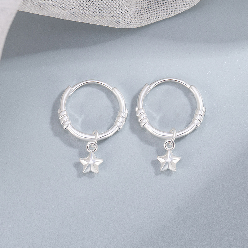 New Plain Ring Small Star Earrings for Women, Versatile, Simple, Korean Style, Fresh, Artistic, Cute, Small Women's Ear Jewelry