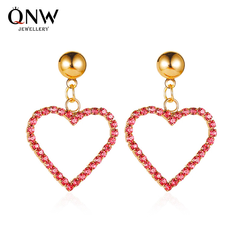 Korean Style Simple Heart Earrings, Pure and Girly, Diamond-Encrusted Peach Heart Earrings, Internet Celebrity Sweet Heart-Shaped Hollow Pendant