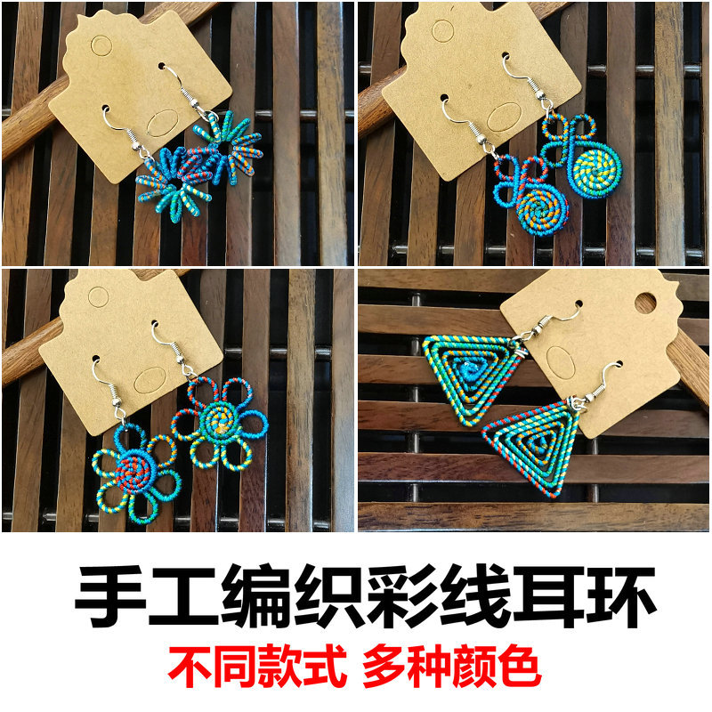 Special ethnic style handmade five-color thread woven earrings women's simple Yunnan accessories cute fresh little girl ear
