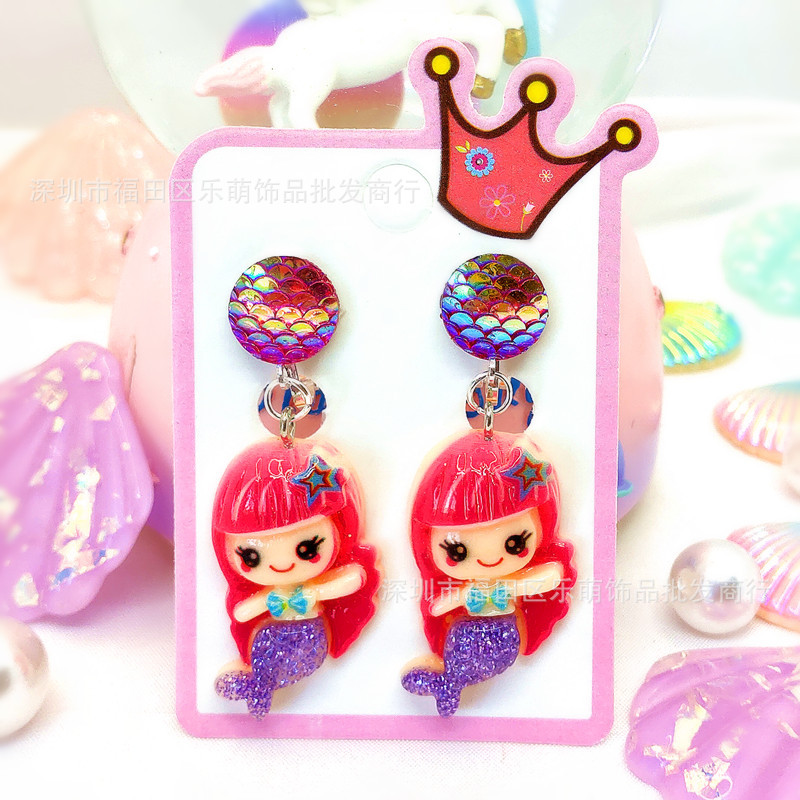 Little girl earrings children student mermaid tail Princess ear jewelry earless ear clip shell gradient color