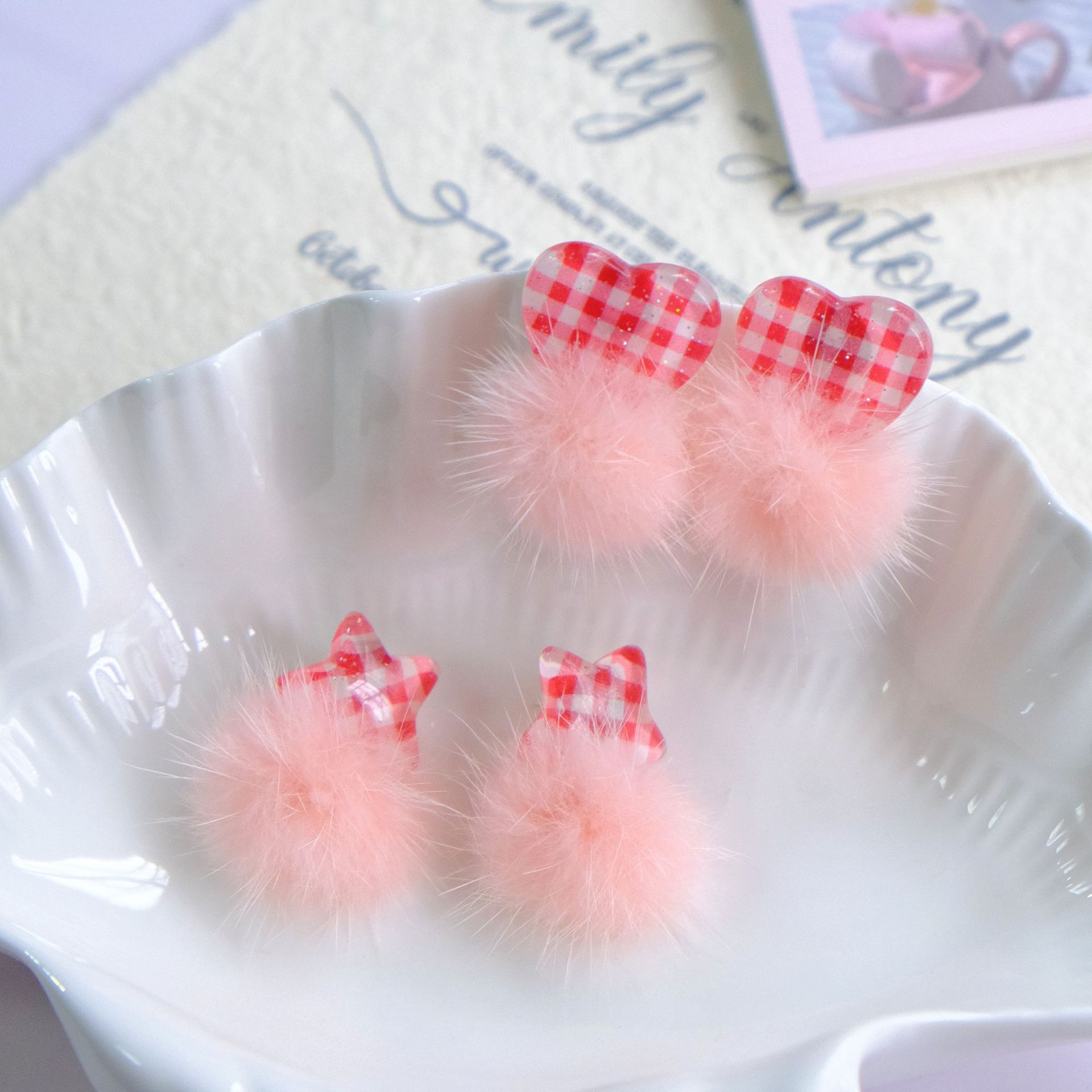 Gentle Pink Love Hair Ball Earrings New Year Festive Cute Five-pointed Star Plush Earrings Soft Cute Girl Earrings Women