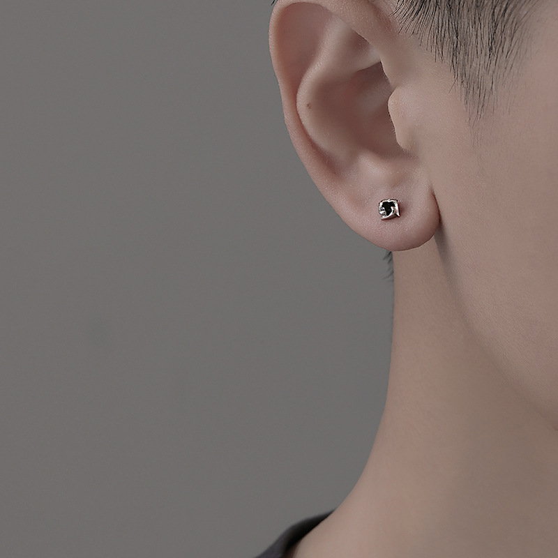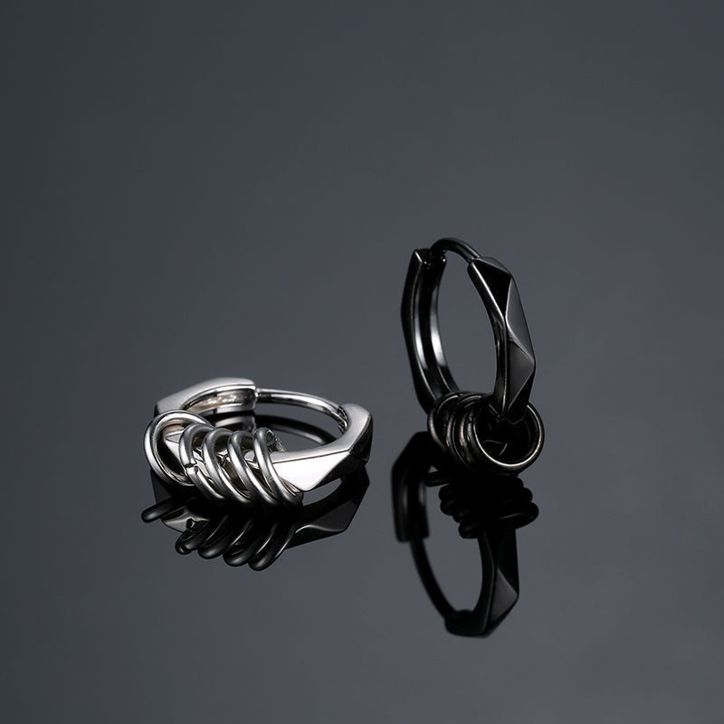 Silver Earrings Earrings Men's Trendy Personalized Men's Design Niche Single Ear Buckle Cool Handsome Men's Ear Ring Ear Jewelry
