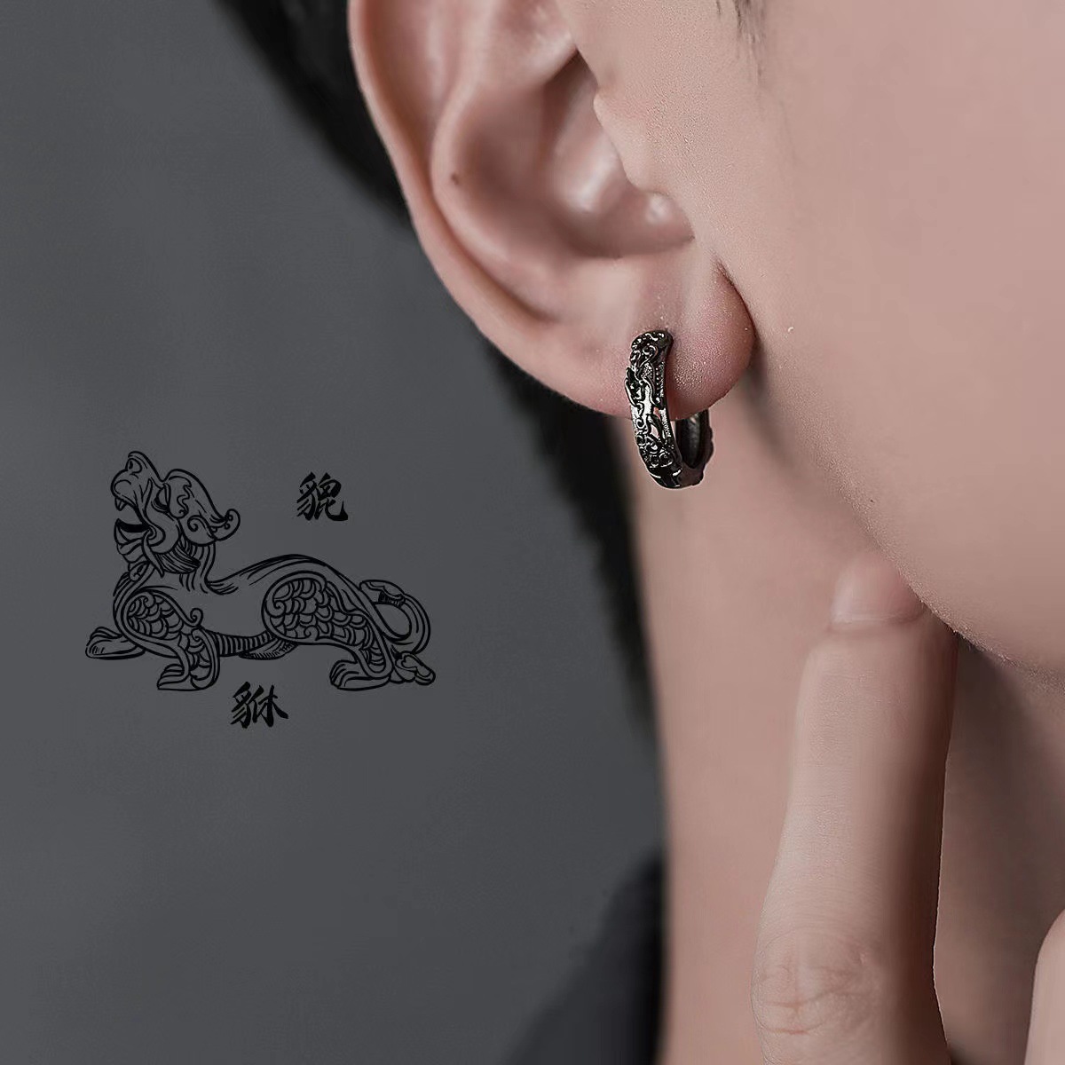 Trendy Men's Chinese Style Earrings Retro Hong Kong Style Single Internet Celebrant Earrings Men's Cold Style Earrings Boys Earrings 2024