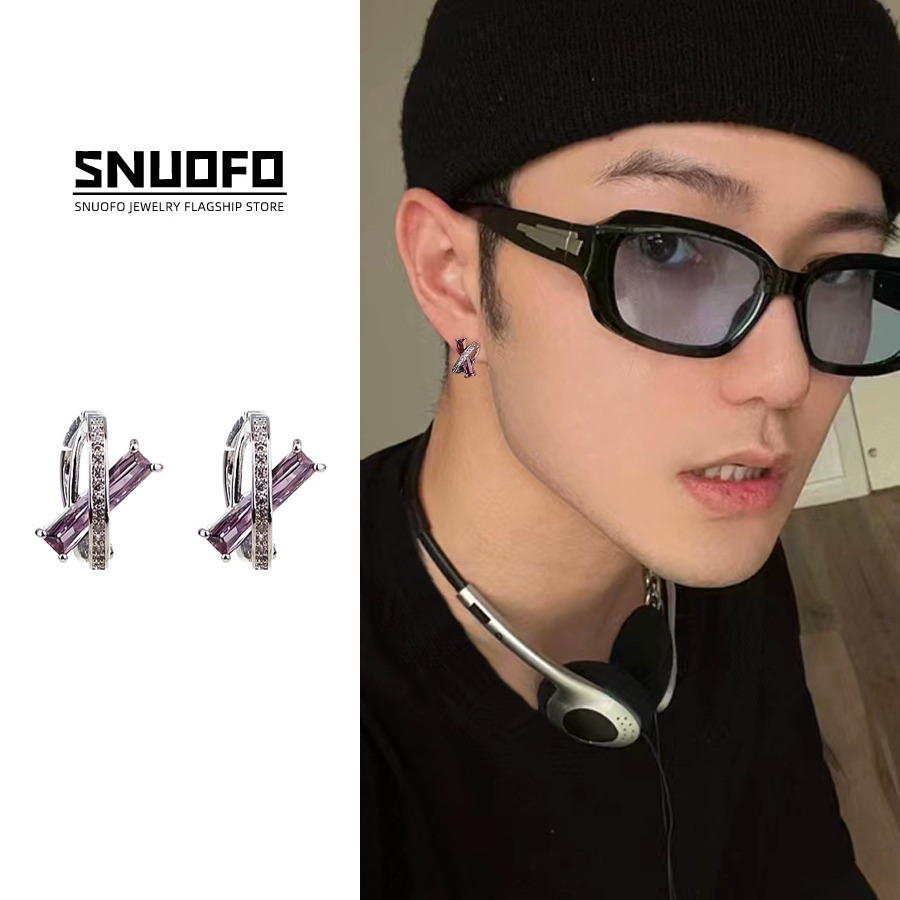 American autumn and winter earrings men's niche design sense advanced men's Ruan handsome earrings personality purple boys hip hop earrings