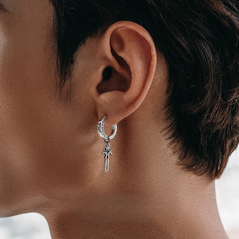 GOOD LUCK Sword Earrings Men's Advanced Ear Stud Pendant Earrings Original Design