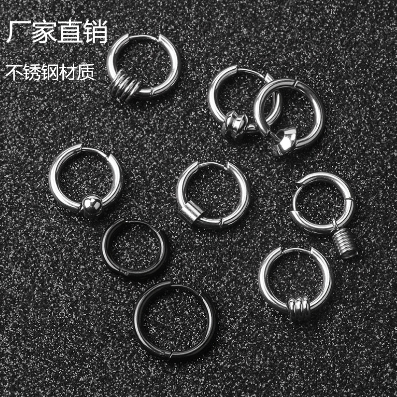 Cross-Border Stainless Steel Punk Earrings Korean Style Simple Non-Allergenic Earrings for Men Cold Style Glossy Earrings and Earrings