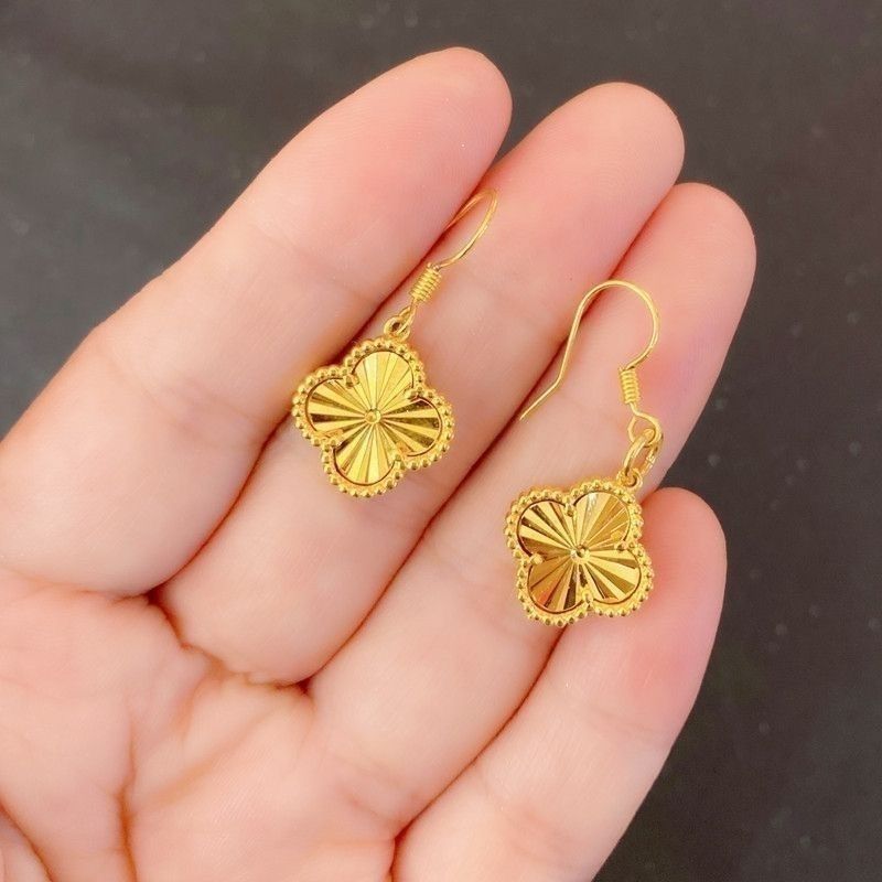 Four-Leaf Clover Gold Ear Hooks New Gold Texture Earrings Trendy Fashion Alloy Material Men and Women Wholesale Styles