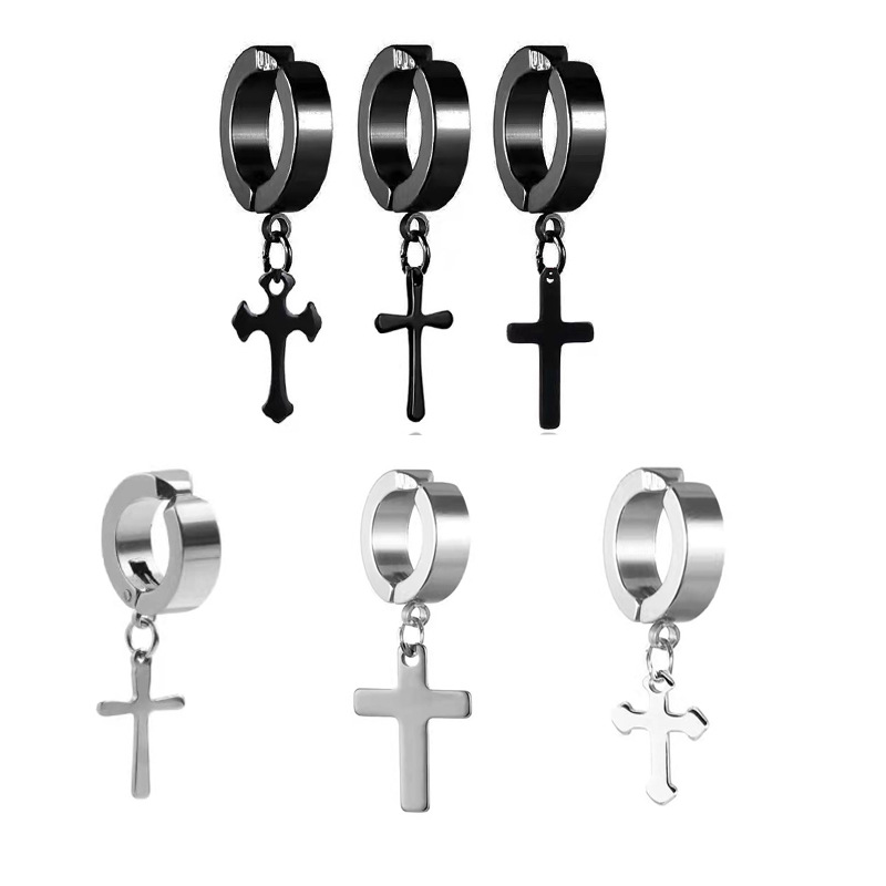 Cross-border factory direct supply wholesale price non-mainstream boys and girls titanium steel earrings no pierced ear clip cross earrings