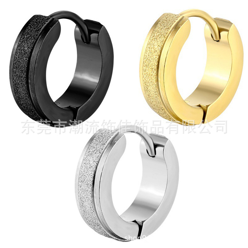 2023 European and American hot selling simple personality titanium steel stainless steel double-layer frosted men's ear buckle earrings cross-border wholesale
