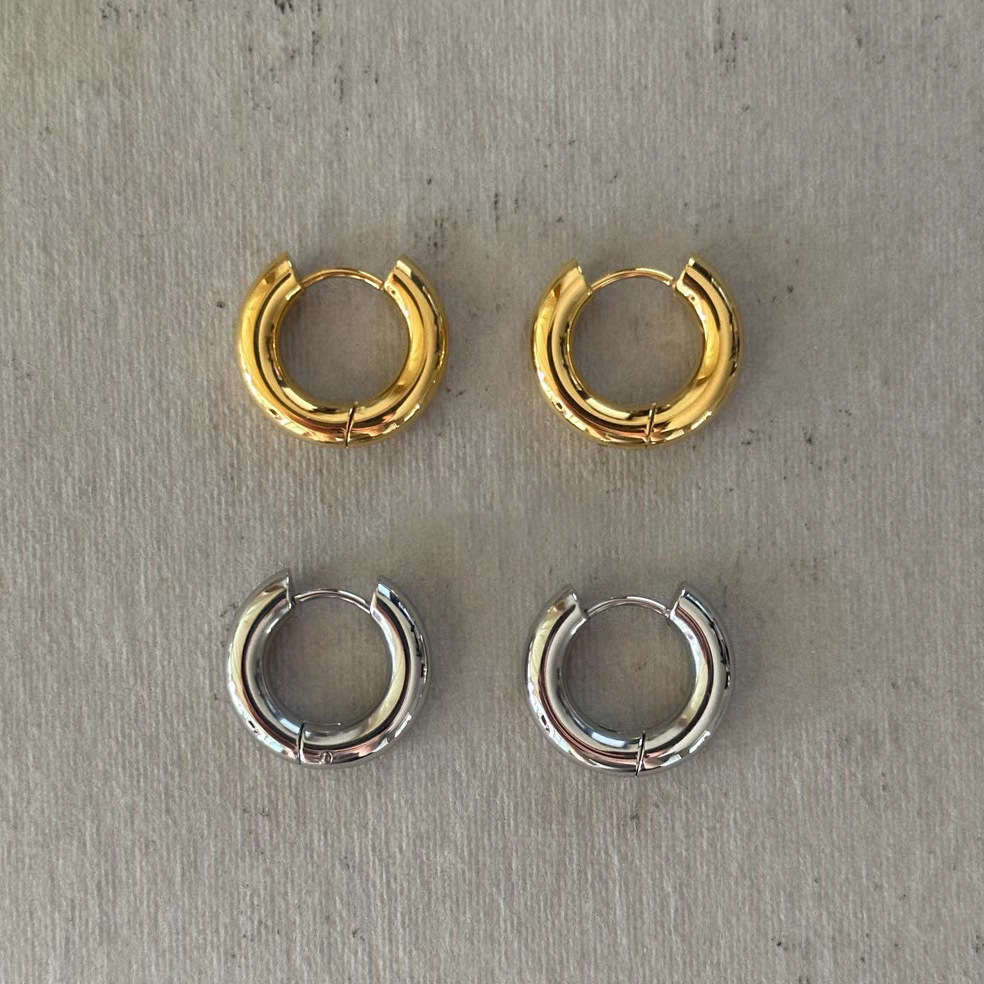 European and American INS style 4mm thick simple 18K gold-plated stainless steel circle earrings simple gold-plated men's and women's ear buckle