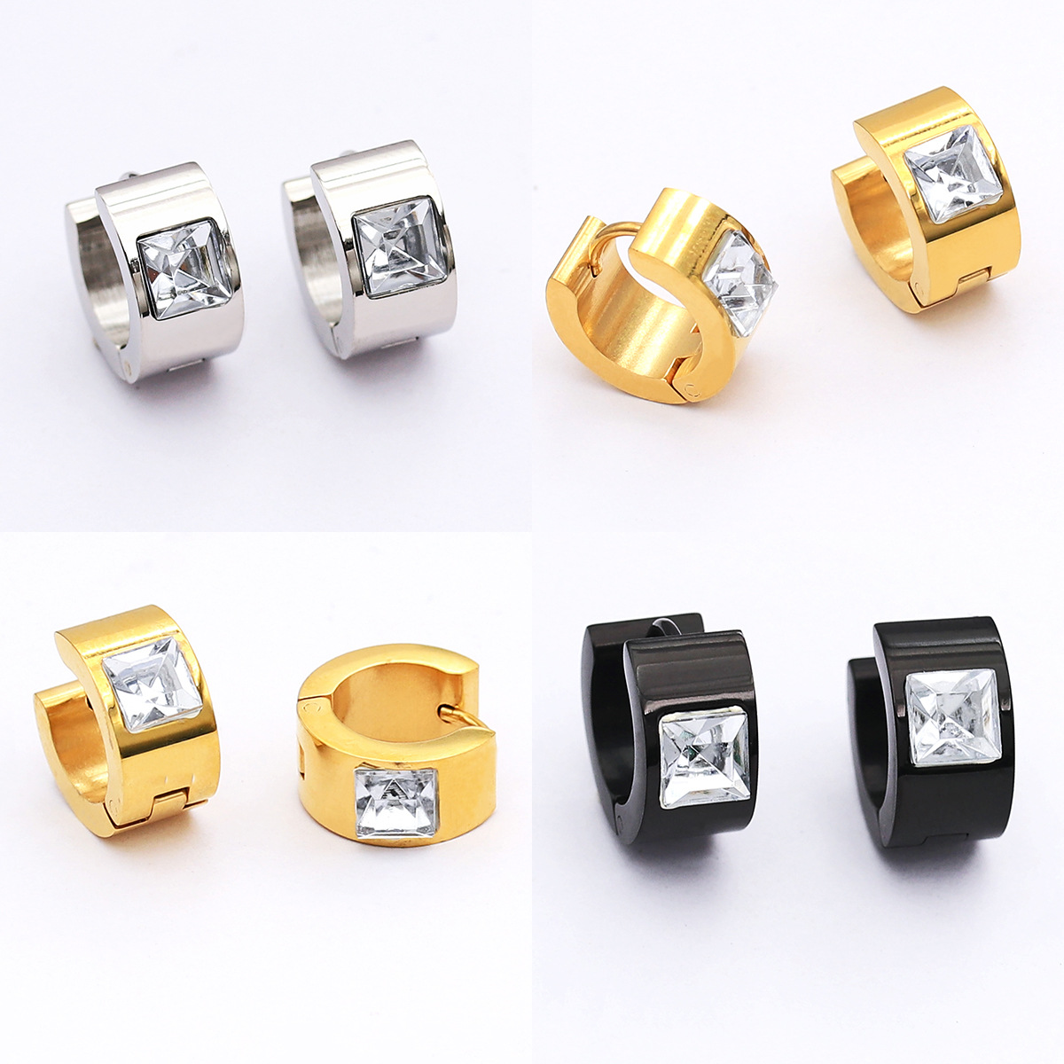 Cross-border AliExpress hipster wide-faced high-level feeling a square diamond men's handsome ear buckle fashion girls earrings stainless steel