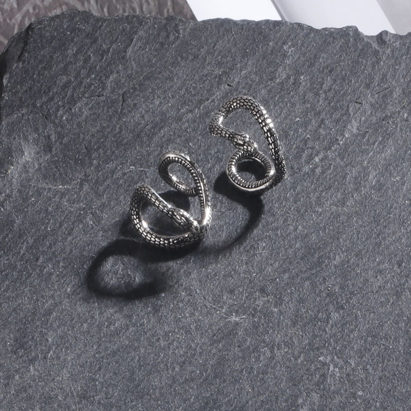 Xinqi Jewelry Retro Non-Pierced Ear Clip Men's Earrings Stylish Cool Style European and American Cross-Border Thai Silver Snake-Shaped Ear Buckle
