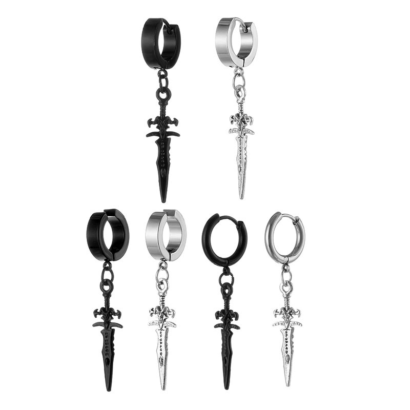 Cross-border retro sword-shaped stainless steel earrings trendy men's titanium steel ear clip Japanese and Korean hip-hop earrings manufacturers for sale