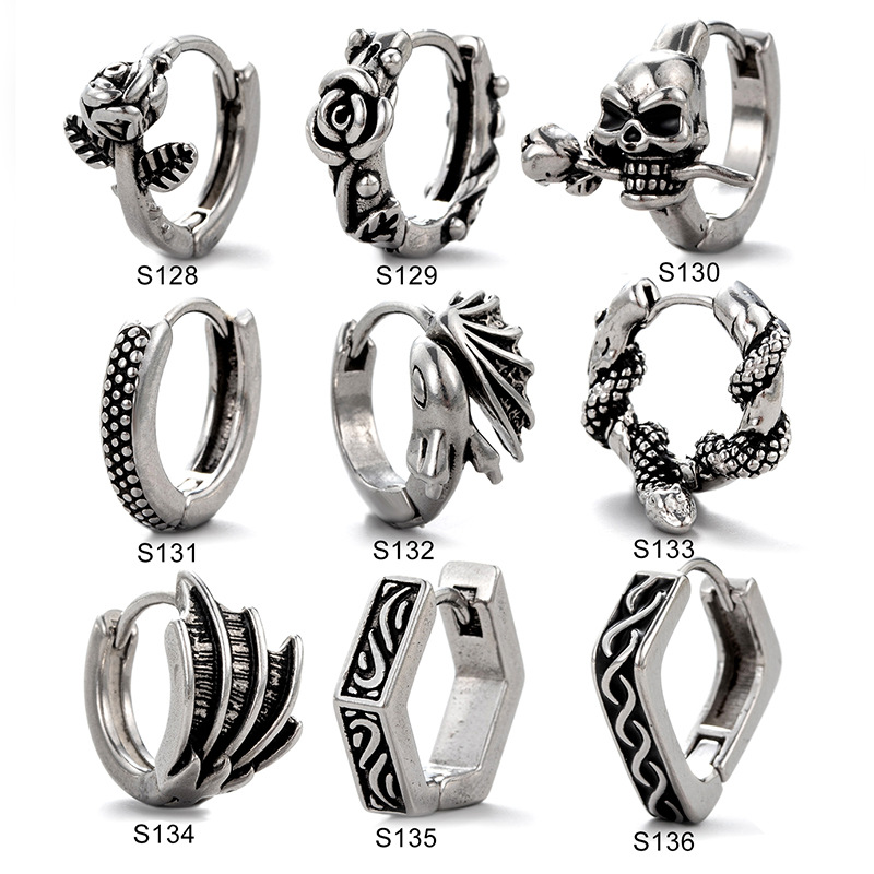 New Men's Piercing Earrings Stainless Steel Cast Rose Skull Snake Fashionable Ear Ring Ear Buckle Single