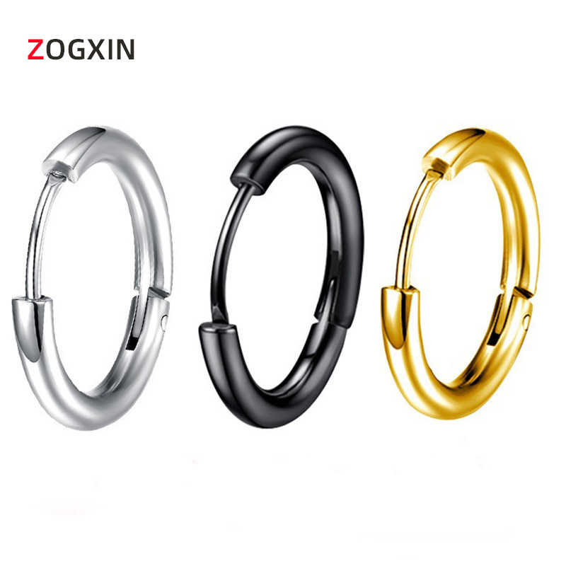 Korean Style Stainless Steel Hypoallergenic Versatile Stylish Trendy Round Wire Earrings Titanium Steel Simple Men's Earrings Coil Ear Buckles