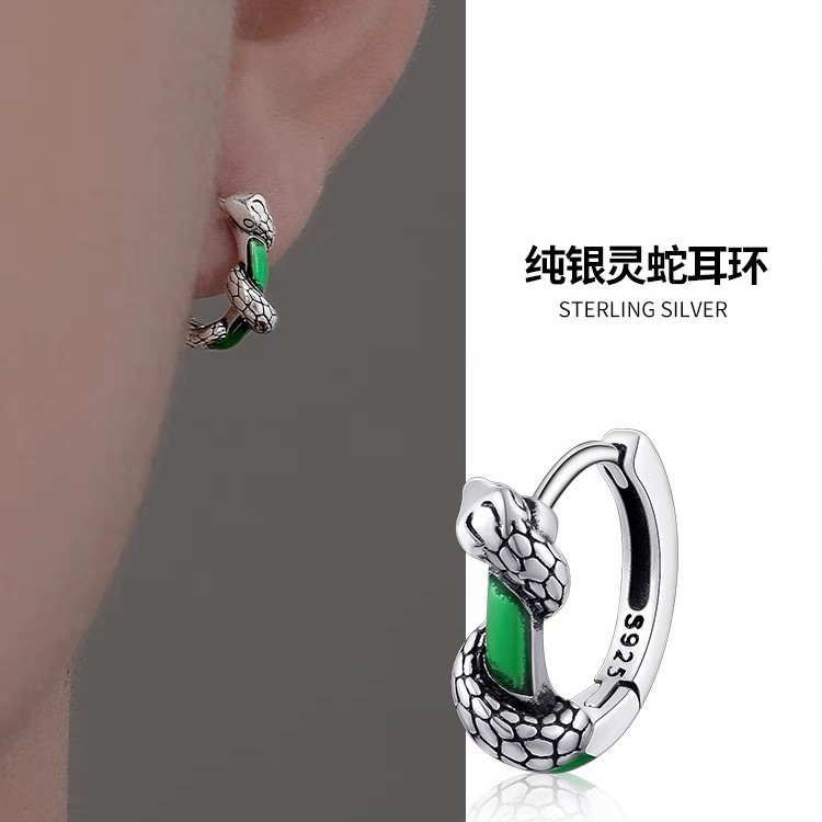 S925 sterling silver earrings men's high-end sense trend ruffian handsome spirit snake ear buckle new cold wind boys earrings wholesale