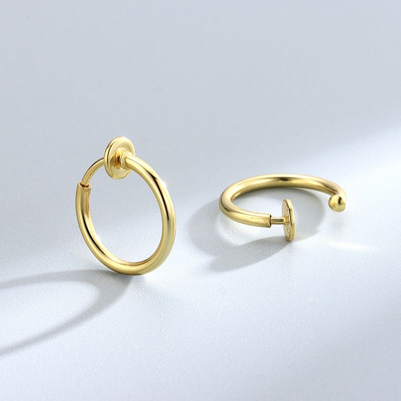 S925 Sterling Silver Simple Men's and Women's Ear Clip False Earrings Japanese and Korean Fashion Personality Gold Plated Instagram Style Earrings