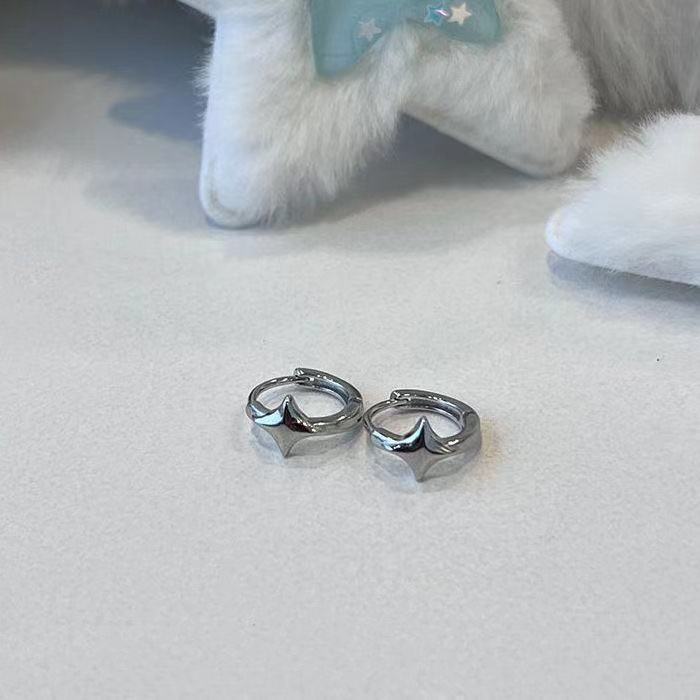 Korean Style Minimalist Style S999 Sterling Silver Earrings Women's Simple All-Match Silver Foot Earrings Men's Cold Style Exquisite Plain Ring Earrings