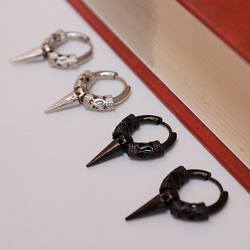 Cross-border European and American punk Street personality retro men's earrings stainless steel personality skull earrings earrings