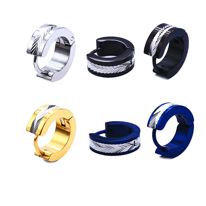 Earrings for Men Titanium Steel Trendyy Stylish Men's Hip-Hop Ear Flower Men's Handsome Simple Men's Earrings Hoop Student Single