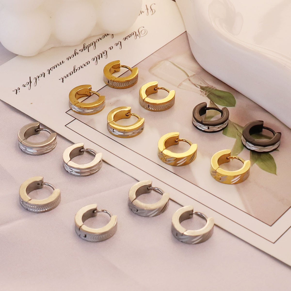 Cross-Border Fashion Full Circle Batch Flower Earrings Earrings Stainless Steel Personalized Multi-Color Men's Earrings Earrings Wholesale