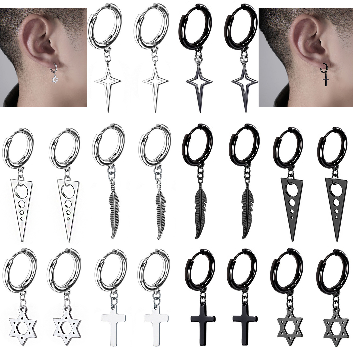 Borsalina New Men's Piercing Earrings Stainless Steel Cross Retro Hip Hop Men's Earrings