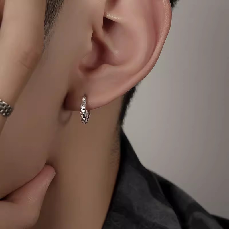 Xinqi jewelry Mobius earrings trendy men's hip hop single earrings fashionable personality plain ring geometric twisted rope ear buckle