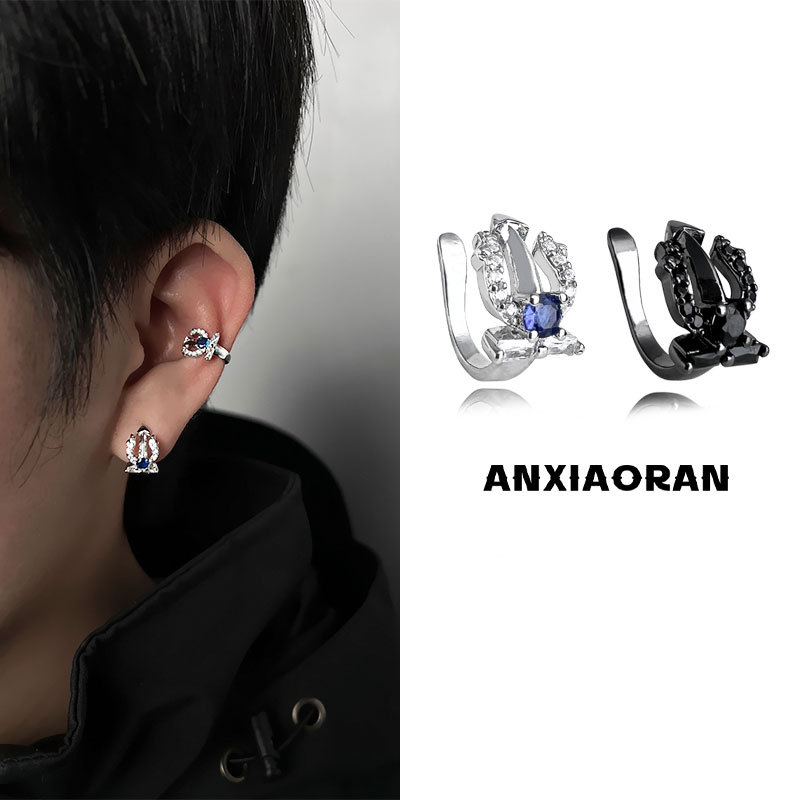 Copper Alloy Earrings, Same Style as Jin Jiancheng's Neptune Trident Blue Non-Pierced Ear Clip Men's Ear Bone Clip Earrings Ins
