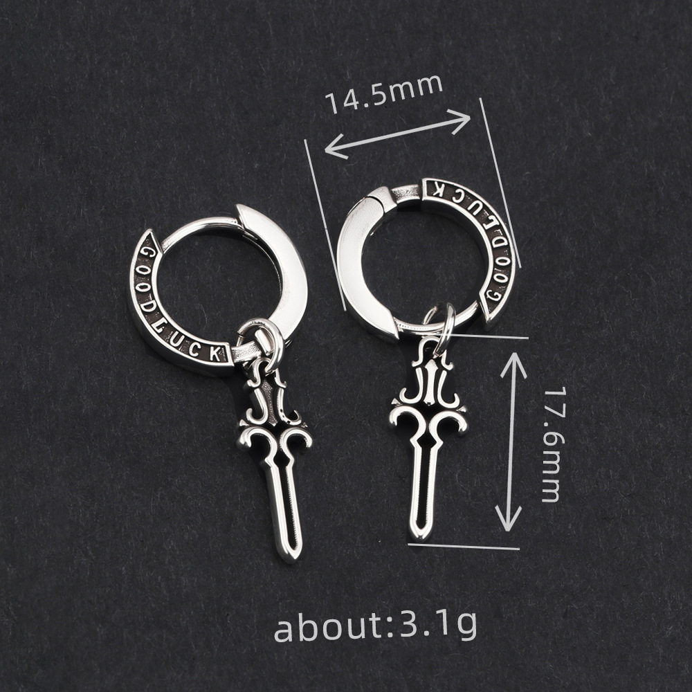 Vintage Cross Earrings for Men Trendy Versatile Personality Lucky Sword Earrings Niche Cool Minimalist Style Earrings for Men