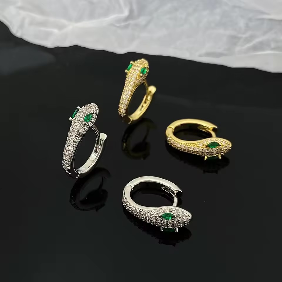 Cross-border Amazon Micro-inlaid Zircon Snake Earrings Ear Buckle Men's Light Luxury High-end Sense Personalized Exaggerated All-match Earrings
