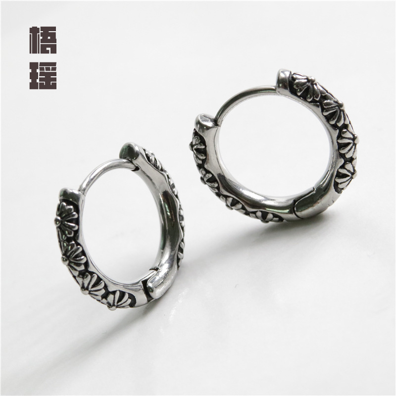 PS696 European and American Simple Cold Style Vintage Titanium Steel Cast Carved Twisted Rope Men's Ear Buckle Trendy Ear Ring