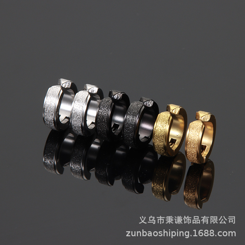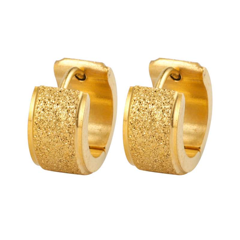 Cross-border Europe and the United States new titanium steel earrings men and women fashion Tuhao gold frosted granular stainless steel earrings