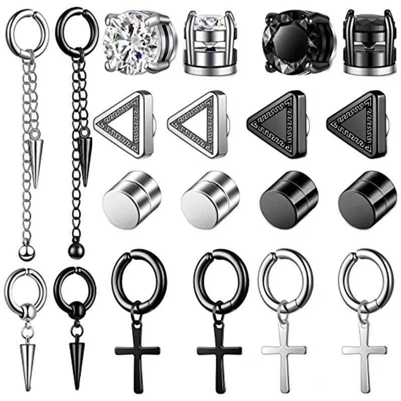 Personalized Men's Magnetic Ear Clips Stainless Steel Electroplated Earrings Non-Perforated Cross Hanging Ring Magnet Ear Jewelry Set