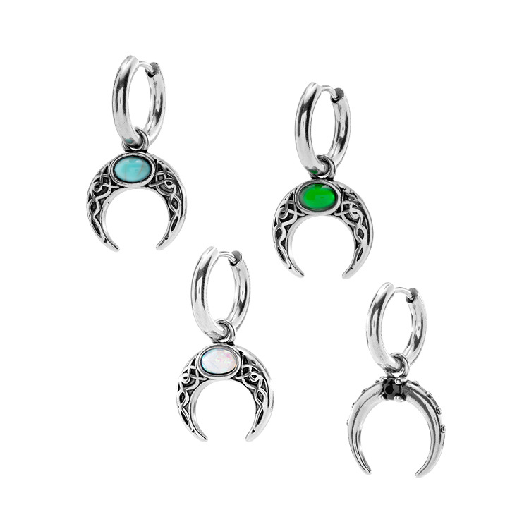 Cross-border Distinctive Diy Fashion Half Moon Earrings Stainless Steel Earrings Men's Earrings Trendy Women's Ear Buckle Niche Earrings