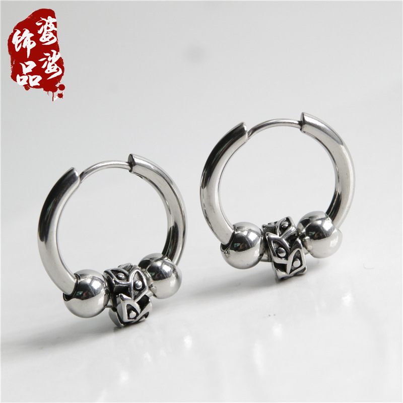 European and American personality diy exaggerated street earrings stainless steel earrings men's earrings tide earbuckle foreign trade earrings special
