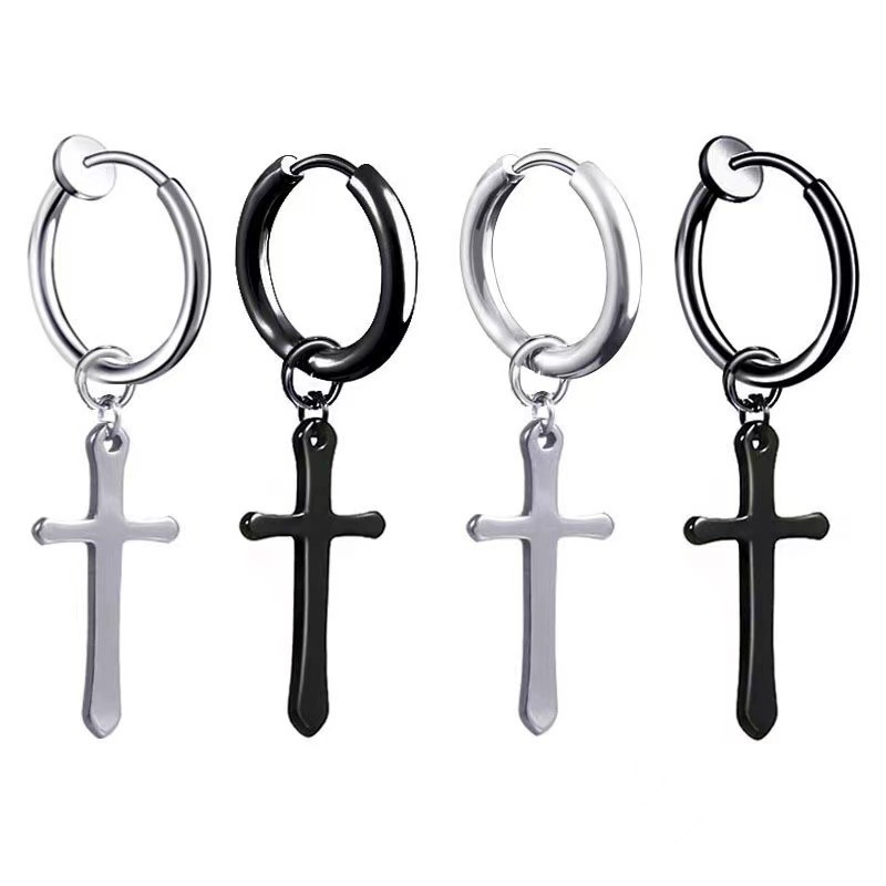 Amazon Fashion Cross-Border Cross Ear Clips for Men, Tassel Titanium Steel Earrings for Women, Stainless Steel Ear Cuffs, Personalized Trend