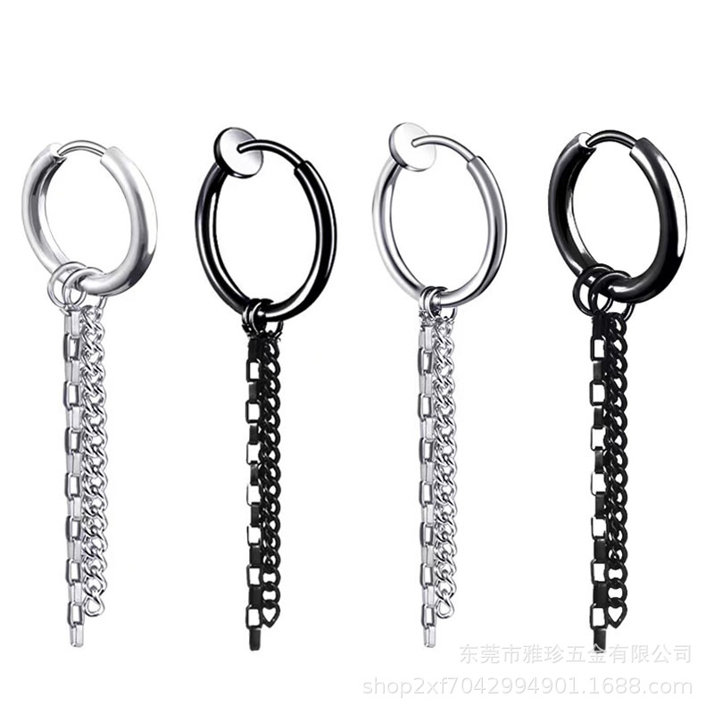 Factory Direct Sales Original Korean Earrings for Men Without Pierced Ears, Trendy Chain Pendant Earrings, Accessible Luxury and High-End Earrings